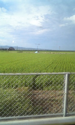 この延々続く田んぼの向こう、更に奥に見えてる山の手前に海があります。
