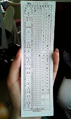 それをもらってお金を車掌さんに払い、降りた駅でこの乗車券を車掌さんに渡せばOK。