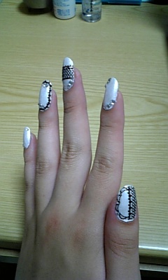 綺羅とのおそろ計画その1:爪(あたしは白地に黒レース。綺羅は黒地に白レース。ザンスク色ですよv)
